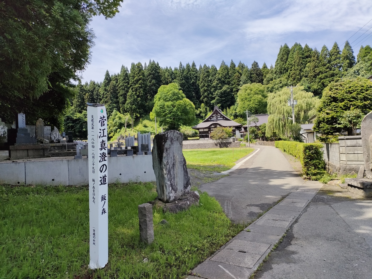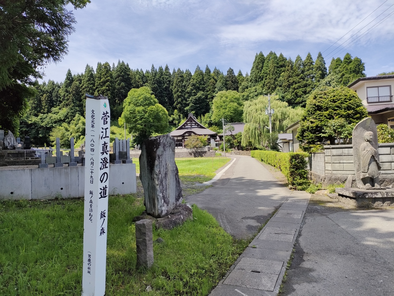 寒風山登山では、JR男鹿線の脇本駅から徒歩20分(1.7km)ほどの宗泉寺の入り口にも菅江真澄の標柱が立っていました。