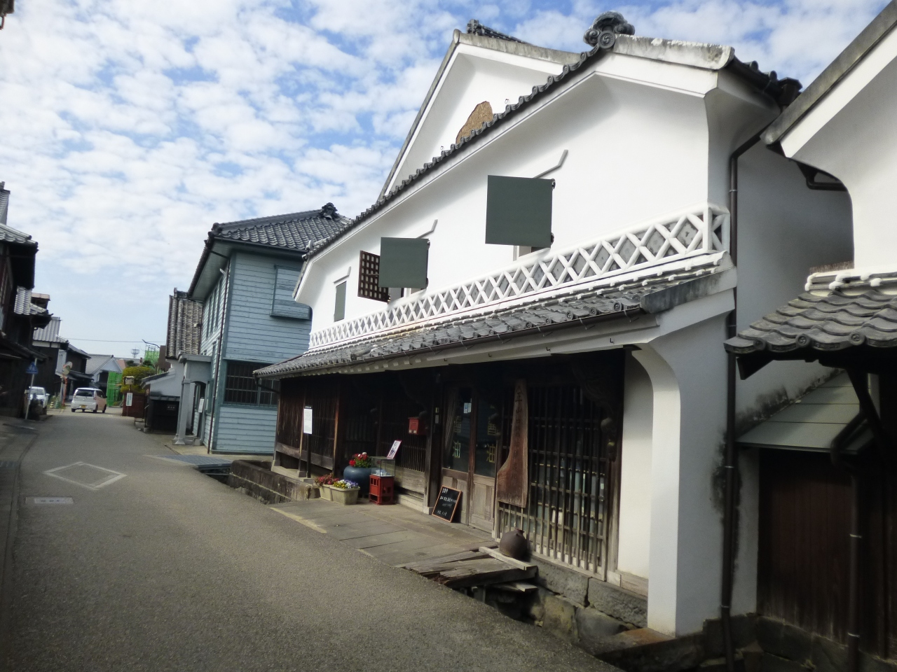 肥前浜宿の酒蔵通りの中程にある醤油の専門店です。酒蔵通りの中でもひときわ美しさの目立つ建物です。創業以来、醤油の製造販売のみを行ってきた専門店で、醤油を冷まして保管するときに木の樽を現在も使用しているそうです。プロ用の一升瓶なども多く置いてありますが、500mlの持ち帰りやすいものもあります。
