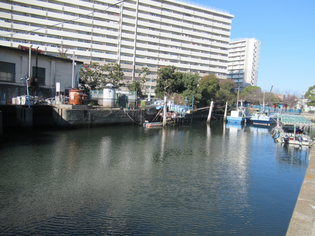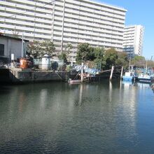 内側に船が停泊していました