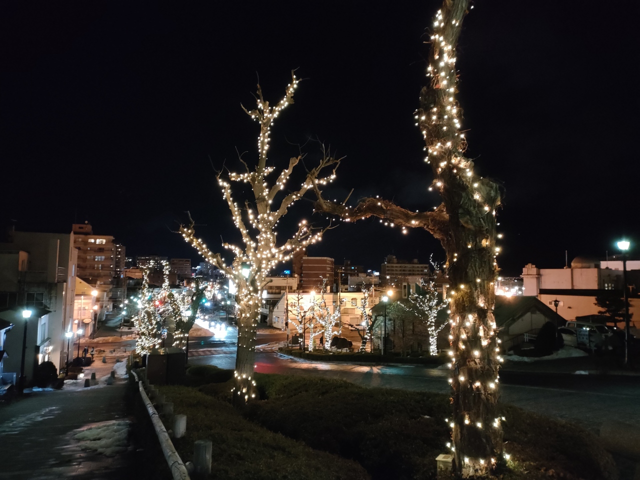 八幡坂や二十間坂、開港通りなどの街路樹にイルミネーションが輝くはこだて冬フェスティバルは、12月から2月いっぱい行われていて、12月中(クリスマスまで)は、はこだてクリスマスファンタジーも加わり、ベイエリアに立つ巨大クリスマスツリーや花火の打ち上げ、そして周辺の元町地区の雰囲気に花を添えます。