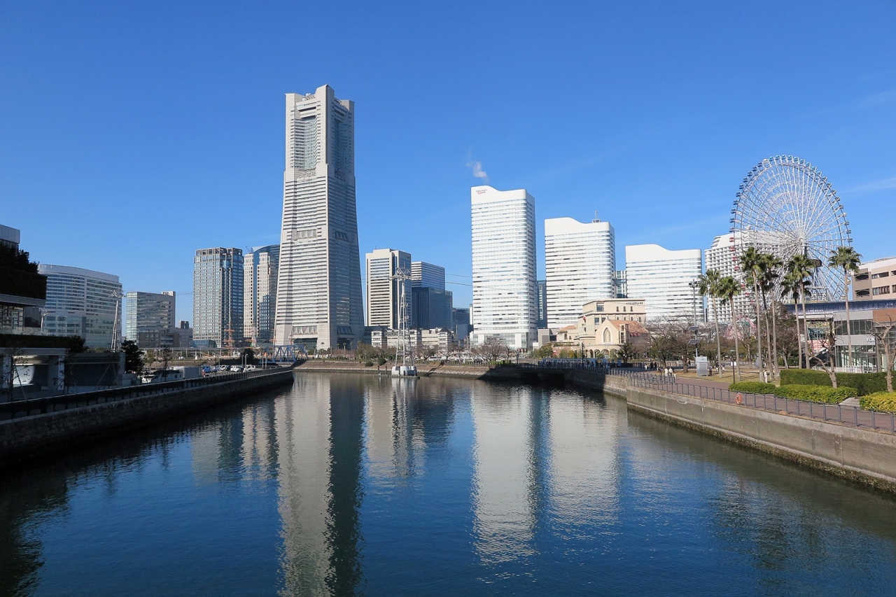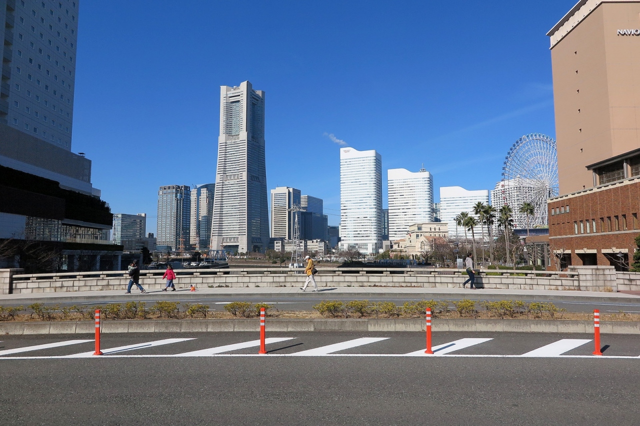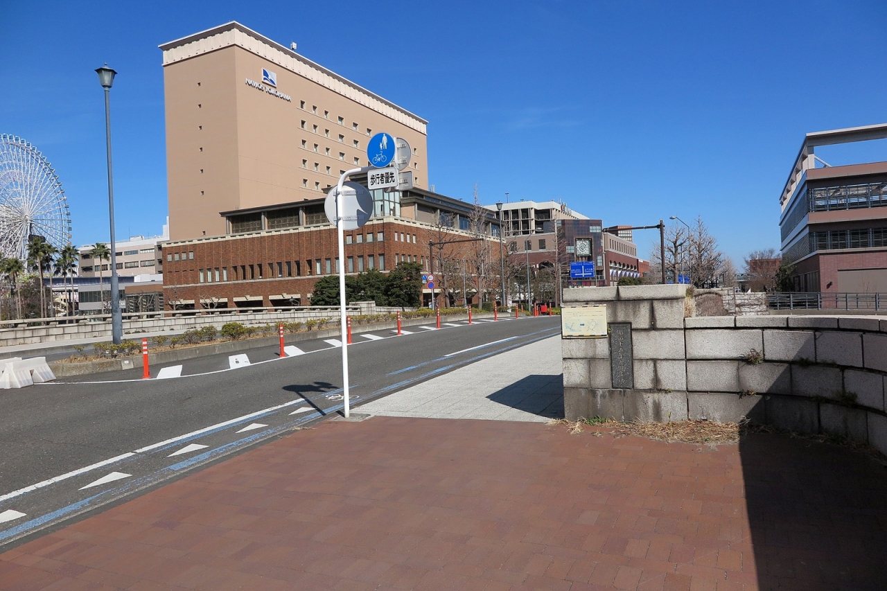 横浜において外国貿易の中心地として明治時代に造成されたのが新港地区、その新港地区と陸地とを結ぶ唯一の橋として明治37年に架けられたのが初代「万国橋」。現在の橋は昭和15年に再架橋されたコンクリート製ですが、アーチが美しいですし、左右の石積みはほぼ初代万国橋当時のものとのことでしたから貴重です。この橋から眺めるみなとみらいの姿は、しばしばテレビや雑誌の取り上げられています。