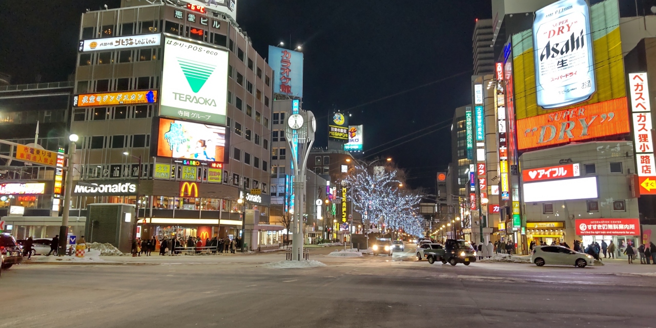 夜のすすきの近辺は人がたくさん集まりすごく楽しいです。