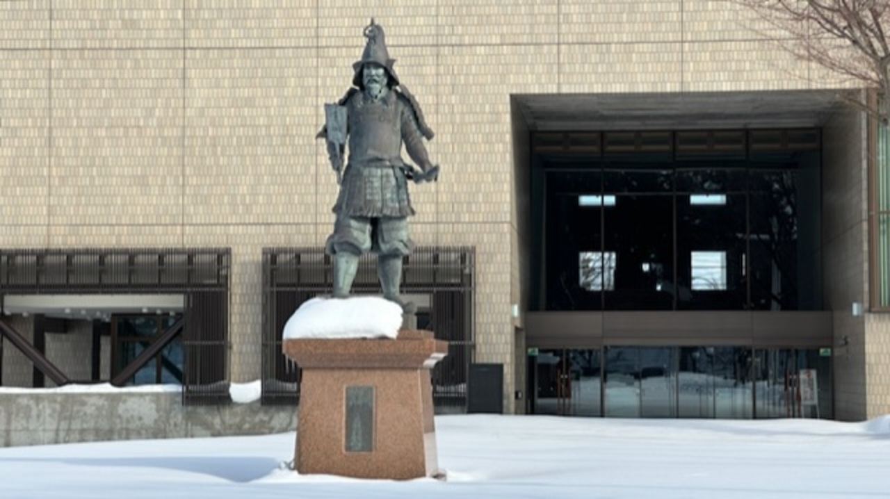 津軽為信像は、弘前公園に隣接する土地に立つ戦国武将・大名の像です。バス停としては文化センター前から徒歩数分です。
