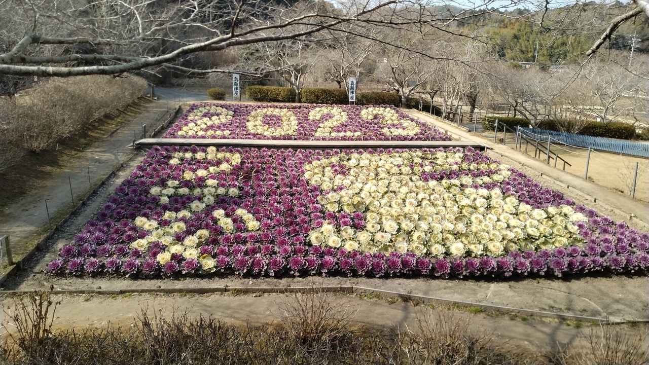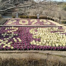 今年の葉牡丹アートを見てきました。寒さで流石の葉牡丹も弱ってましたが、上から見るとそれなりに美しく仕上がってます。