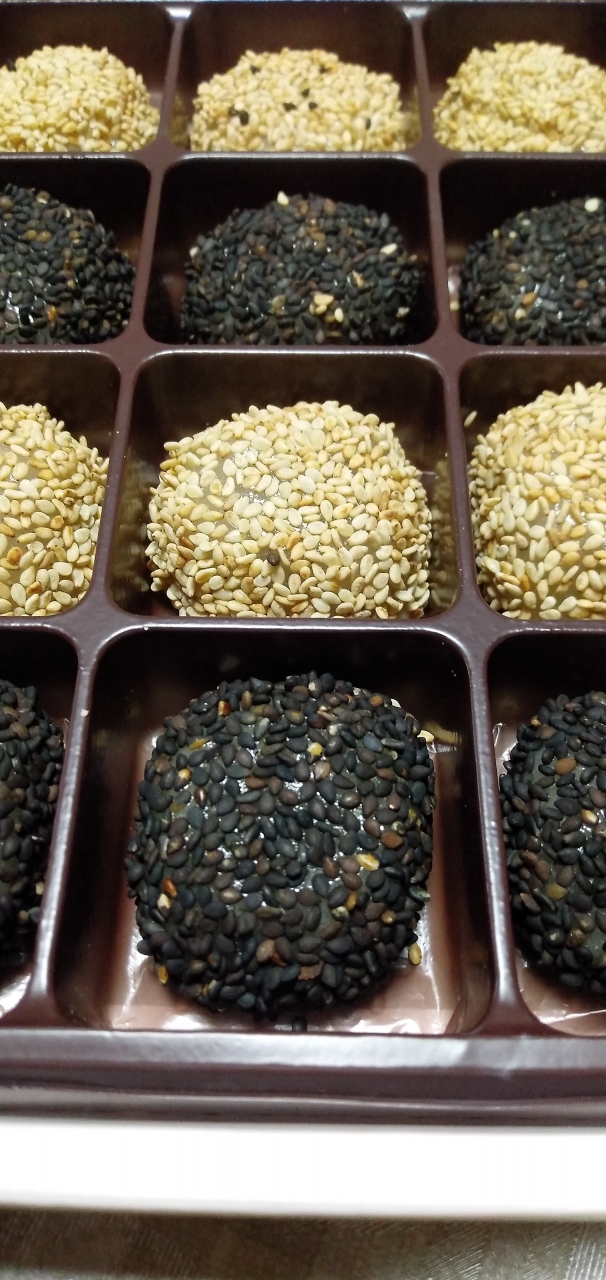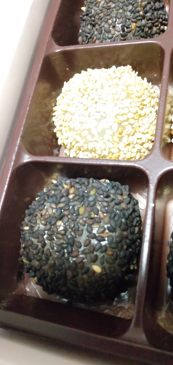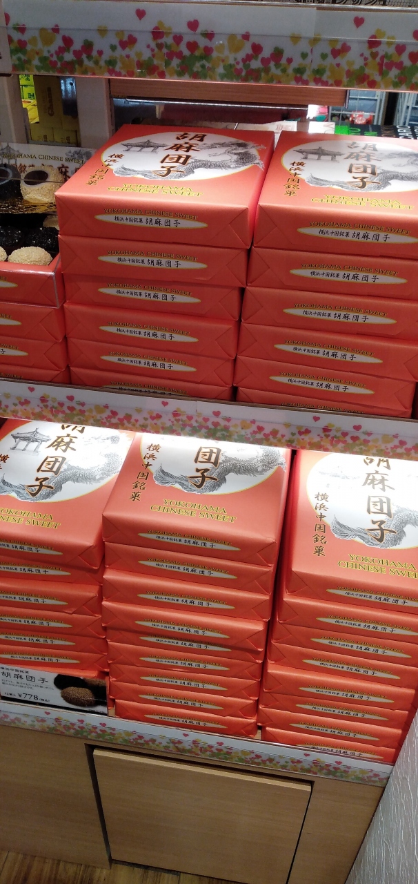 時間の無い中、横浜で最後にお土産購入です。旅行支援クーポンが利用出来てウレシイ。胡麻団子を!たっぷり表面の胡麻は炒り香ばしざっくざく、もっちりの中は、ぢわ甘いこし餡です。場所柄レジ要員さんも多く配置され手際よくてストレスフリーです。