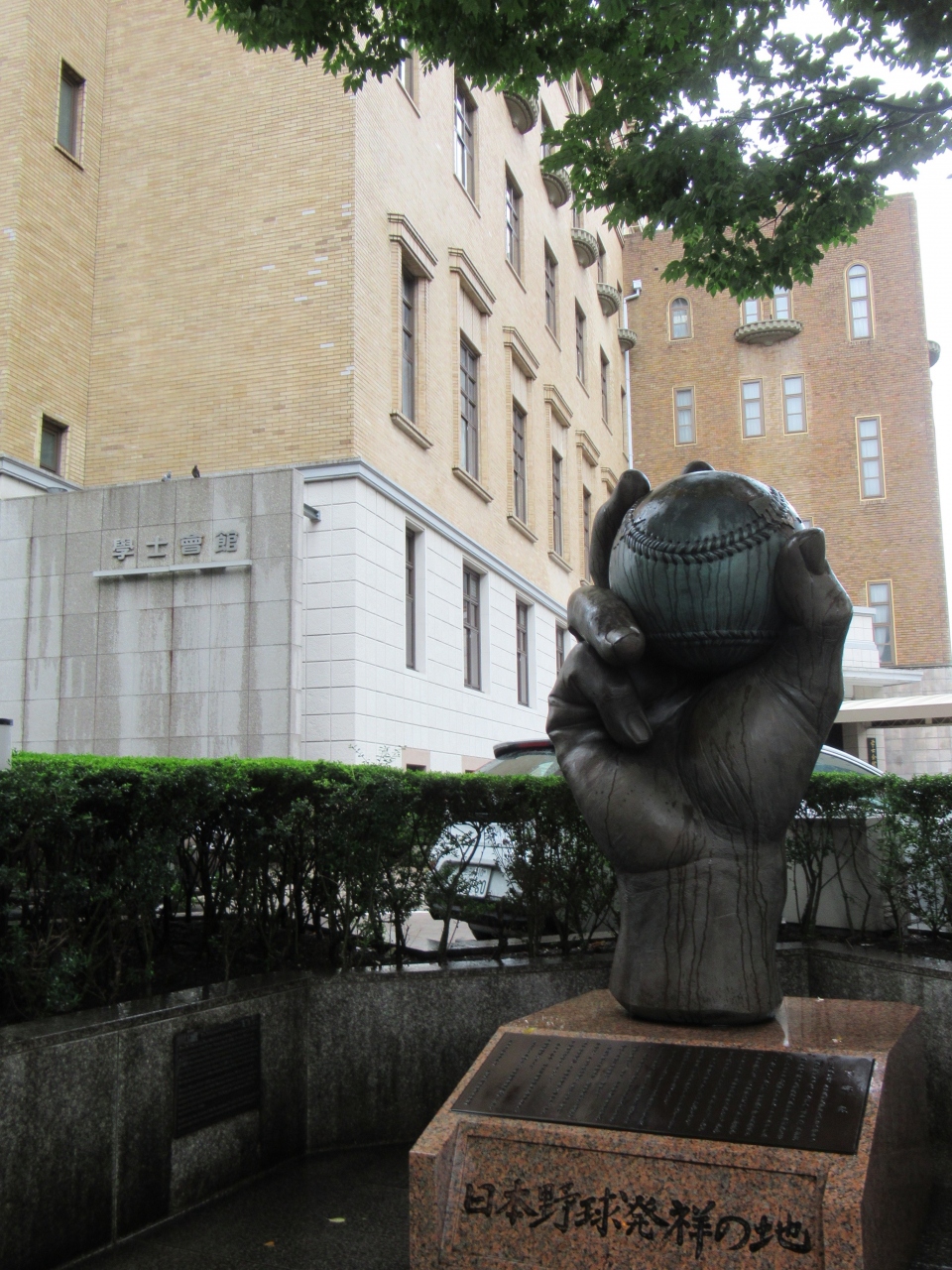 東京の学士会館の敷地内に、野球のボールを握った手の記念碑があり、これが「日本野球発祥の地」のモニュメントです。