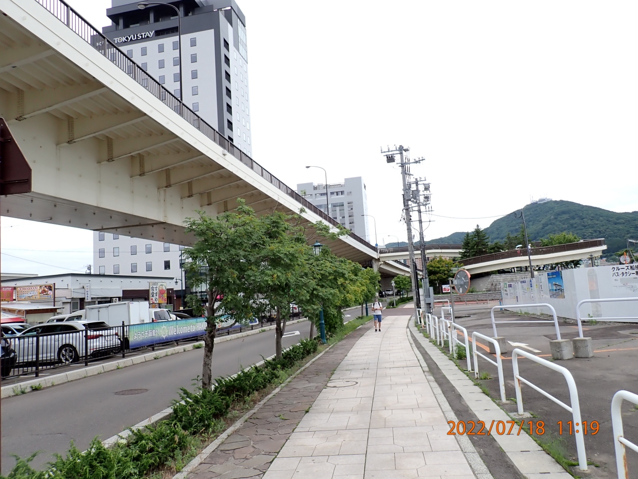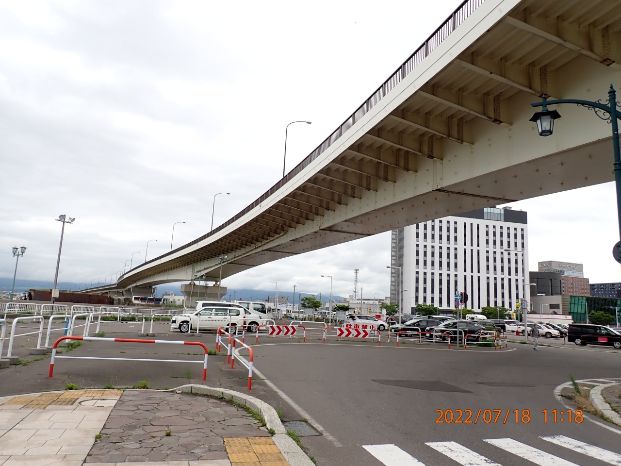 函館市観光で立ち寄りました。ともえ大橋は通称で、正式には函館湾岸大橋と言うのだそうです。函館港における物流の円滑化を図るため、函館港幹線臨港道路第一工区を平成9年、第二工区を平成29年に開通と言うことなので20年も間が開いたそうです。長い橋だと思ったら、全長約1.6kmあるそです。