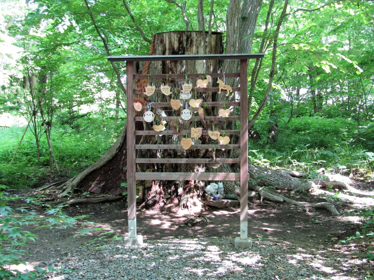 ここでは最近ブームになっている「シマエナガ」の絵馬やおみくじがあるほか、社殿右奥にあるご神木の桂の木は縁結びにご利益があるとされているようで、いずれも多くの絵馬が架かっていました。