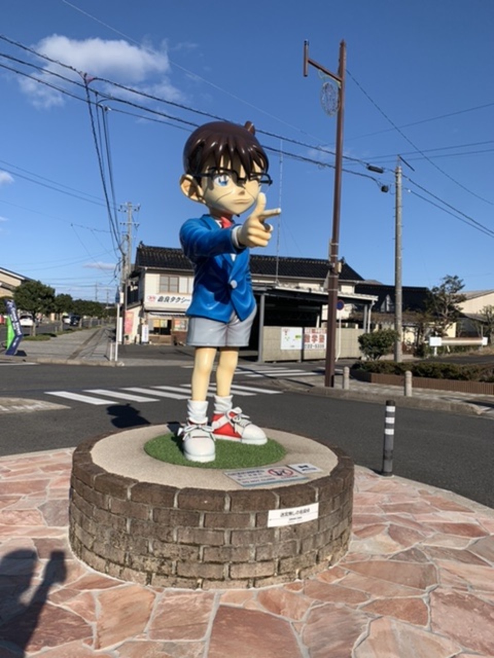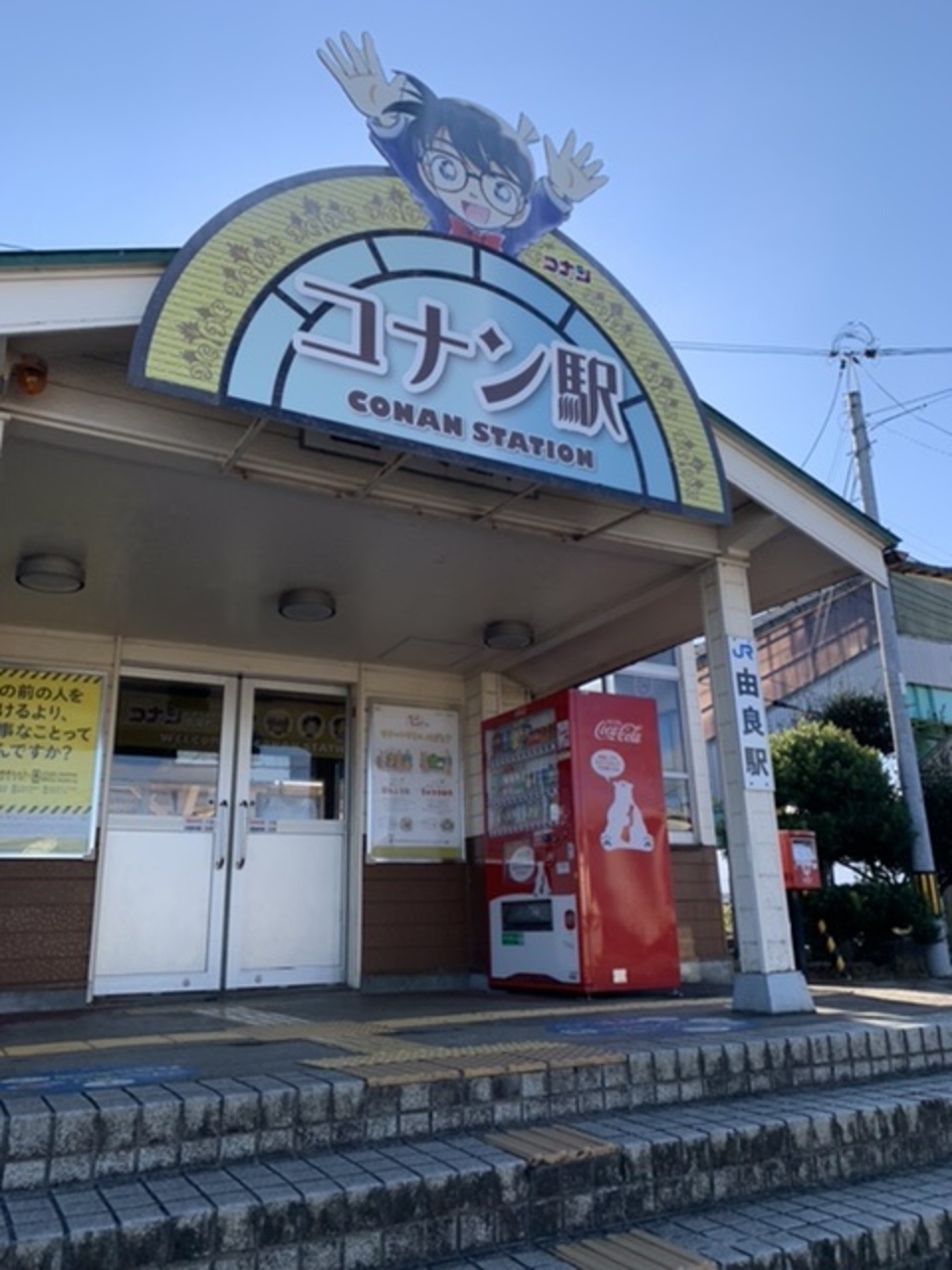 車で近くまで来たため山陰本線の由良駅に伺いました。こちらの駅はコナンの街としている大栄町の最寄駅になります。駅前には大きなコナンの像があり記念写真撮る方多数。駅に隣接している観光案内所にはコナングッズもたくさん並んでいます。