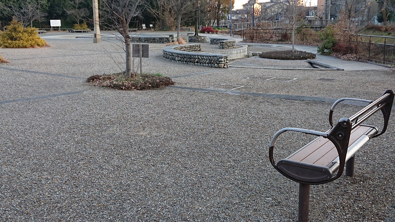 岐阜駅からすぐの位置に立地する緑地です。2月上旬の平日の午後5時頃に訪問しました。まだまだ気温の低い時期でしたが、緑地内にはある程度の人出が見受けられました。寛いでいる人も多く、憩いの場となっているのだな、と感じました。