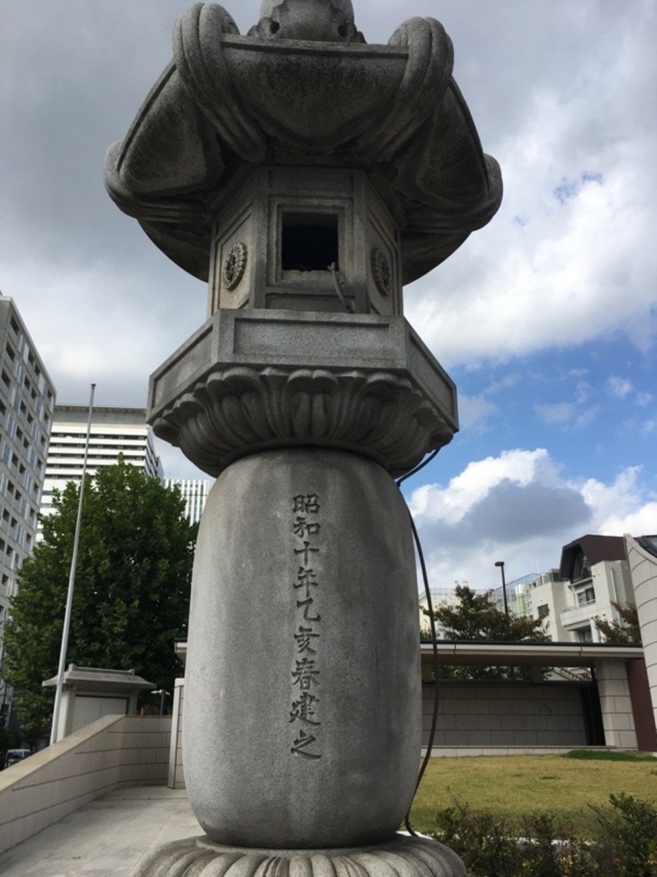 定期的に掃除されている感じで、とても綺麗なお寺でした。花園もありました。築地市場が目と鼻の先のすぐ近くにあるので、食べ物を調達するのには便利でした。おおきな石でつくられていて、階段も広く、お寺本堂も立派でした