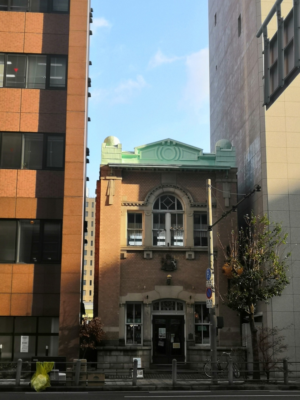 北浜駅から少しだけ東に行ったところにあります。このあたりはオフィスエリアですのでレトロ建築も結構立派な建物が多いですが、こちらは可愛らしい感じでした。朝でしたので外観だけの見学でしたが、カフェのようで中を見ながらゆっくりお茶も良さそうですね。