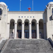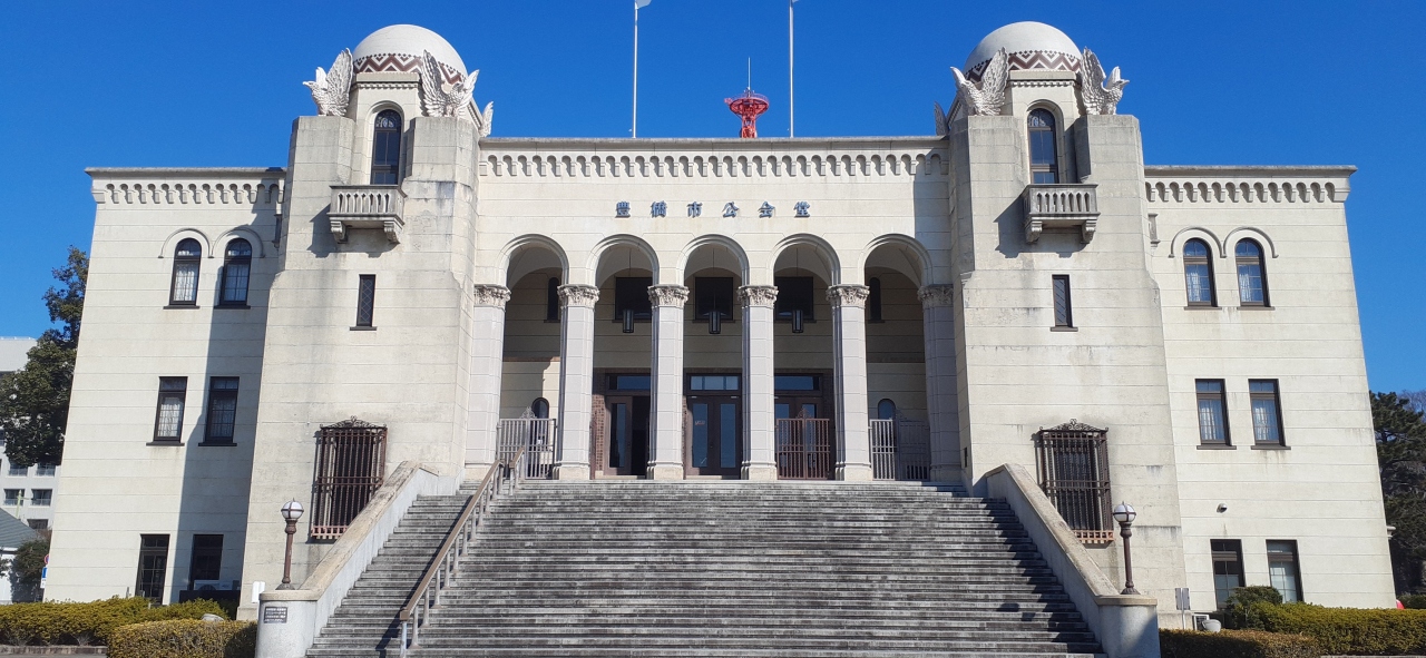 豊橋駅から路面電車にのって5分、豊橋公園駅に降りると、目の前に立派な建物。