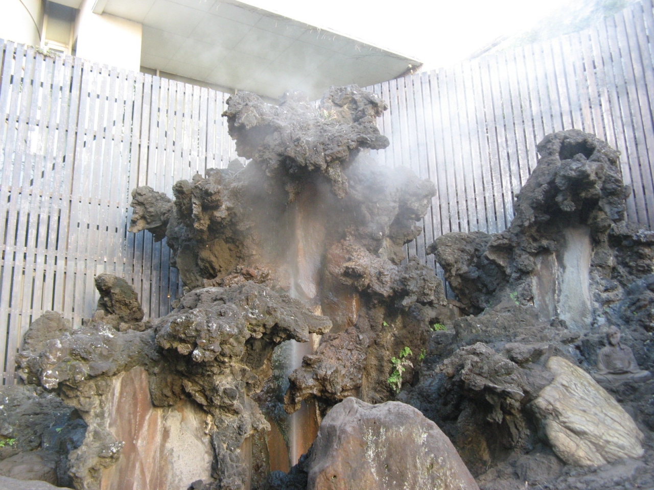 熱海七湯の一つでごつごつした岩の間から湯が吹き上がっていました。現地にある説明板によると世界的に有名な自噴泉だったそうで、昔は天然に噴出していたが、だんだん枯れて昭和37年からは人工的に噴出させているとか。何分間隔で噴出させているのか判りませんが、訪れた時には噴き出していて温泉地らしい雰囲気を感じました。