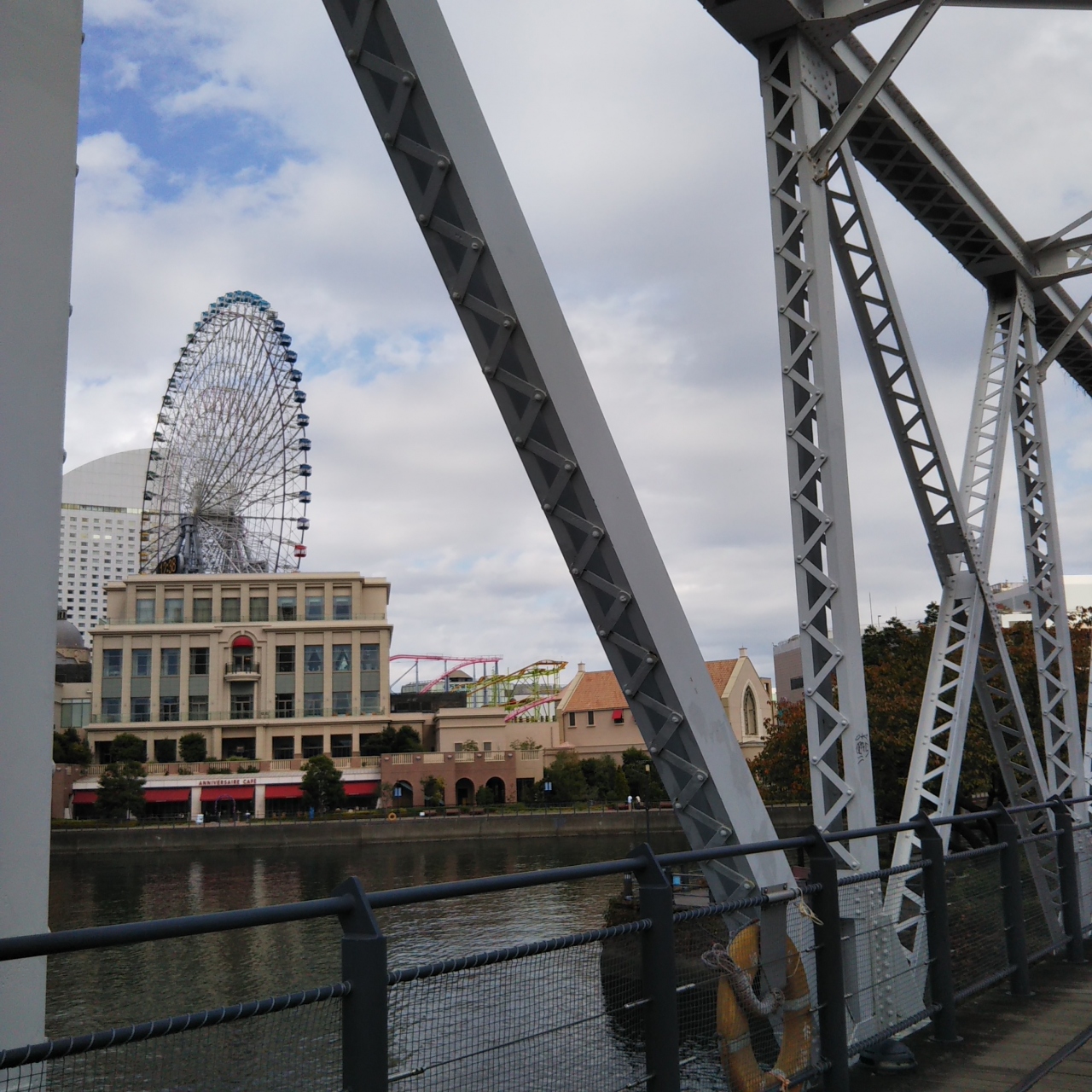 桜木町駅から赤レンガ倉庫方面に行くときにショートカットで通る場所です。かつての実際に使われていた鉄道の廃線軌道が、遊歩道になっています。頭上をゆっくりと通過するエアキャビン、振り向けばランドマークタワーや帆船日本丸など、素晴らしい景色を見ることができます。