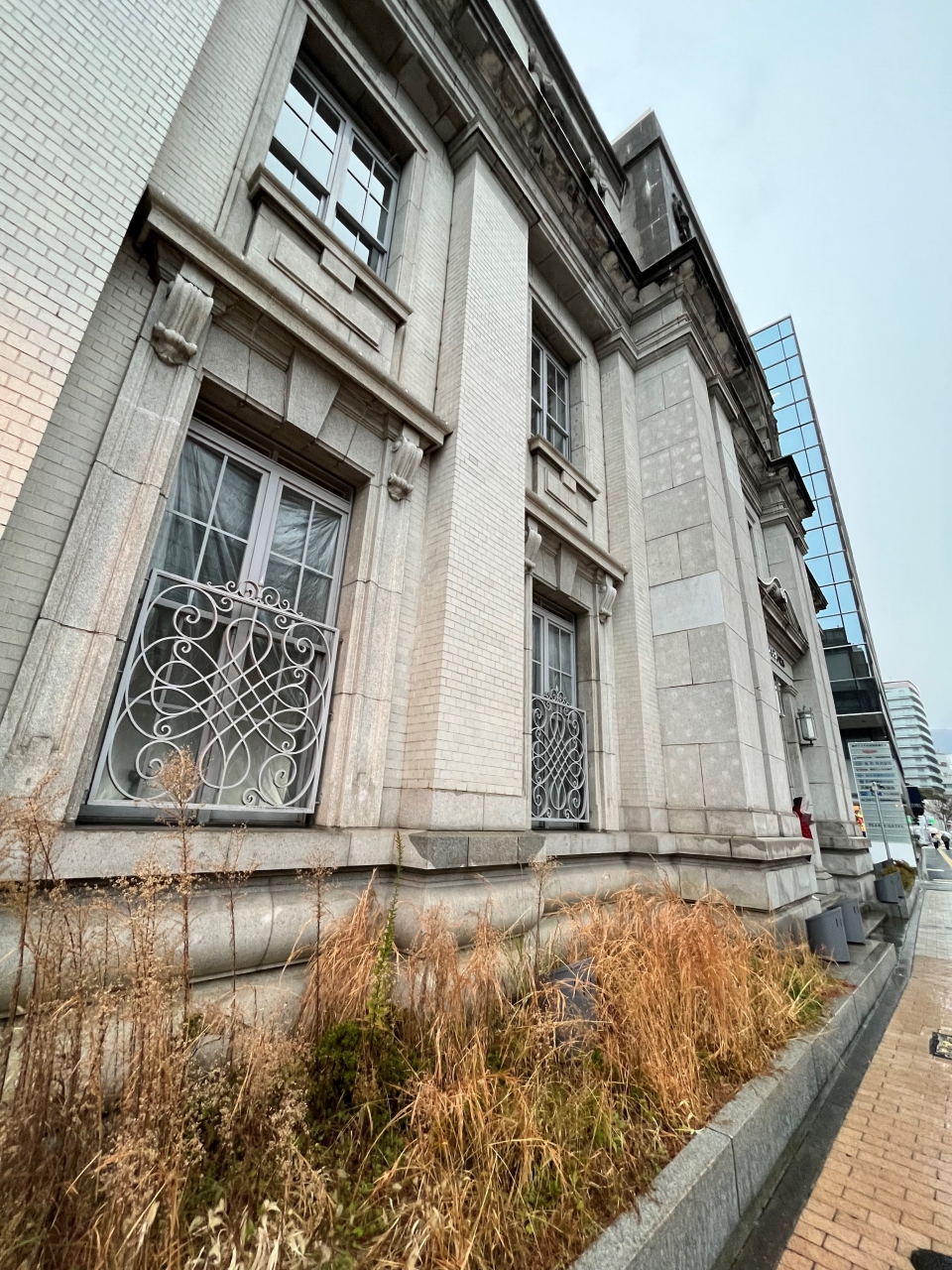 海岸通りに建つ歴史的建造物です。大正時代に、旧日本郵船神戸支店として建てられたものだそうです。近くでは、なかなか一つの写真に収めるのも難しい大きな建物でした。各階で窓の意匠が異なっており、凝った作りだと思いました。