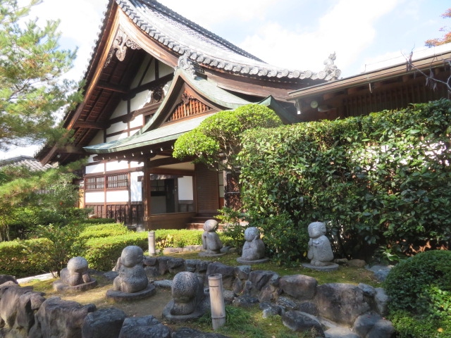 妙心寺の塔頭は、拝観できずに、柵越しでしか拝観できない寺院が多いですが、智勝院は拝観できます。参道の両側の色づき始めた葉っぱが美しかったです。あと本堂の前に、小さく可愛らしい石造りのお地蔵様が並んでいます。どなたも表情豊かでした。
