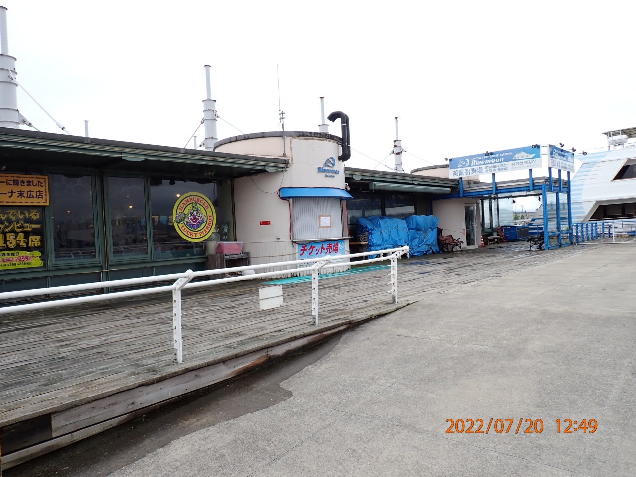 函館市観光で立ち寄りました。観光遊覧船ブルームーンは、西波止場から出て函館港内一周する30分の昼のコースと函館ー寒川周遊コース巡る60分のナイトコースがあり、料金的にもシルバー割引があり、魅力的だったのですが、7月19日から21日までは運休中の張り紙がありました。雰囲気的には。コロナの影響がおさまるまで厳しそうな感じで残念でした。