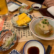 こちらで友人と3次会。鶏料理が得意な居酒屋のようです。飲み物一杯におつまみがつくセットをいただきました。カキフライ、チキンカツ、卵焼き、サーモンの刺身などなんでも美味しかったです。ハイボールをお代わりし、焼鳥もいただきました。