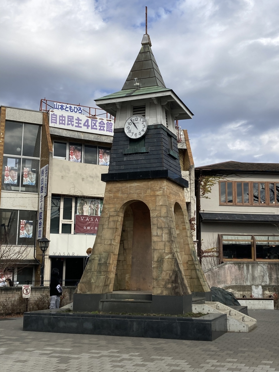 JR鎌倉駅西口(江ノ電改札側)の改札口を出て右側にある時計台。1889年(明治22年)、東海道線の支線として横須賀まで横須賀線が開業した後、1916年(大正5年)に鎌倉駅(東口)の駅舎が改築され、このとんがり帽子の時計台が設置されました。もともと駅舎の屋根にあり、1984年、新しい駅舎の建設により取り壊された際に撤去されましたが、地元の人々から愛着のある初代時計台を残してほしいという声から、西口に移築されました。東口に比べて地味な印象のある西口ですが、西口の象徴として、待ち合わせの定番スポットになっています。「とんがり帽子」という愛称の似合う、レトロな鎌倉に合う時計台です。