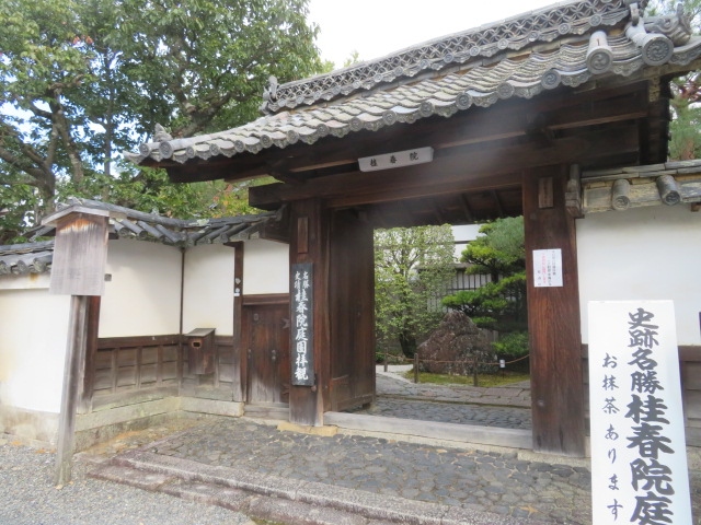 こちらは、妙心寺の塔頭です。妙心寺の塔頭はほとんどが非公開ですが、紅葉のシーズンからなのか、山門に立て看板があって、「史跡名勝 桂春院庭園」とあり、有料で公開されていました。内部の松が描かれた襖絵も素晴らしかったです。