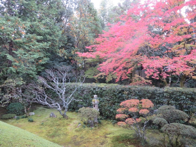 桂春院は、北門に近いお寺です。紅葉のシーズンからか、庭園が有料で公開されていました。山門から入るとすぐに桂春院庭園の情緒ある全景図があります。こちらの紅葉は少し早かったですが、結構色とりどりで、やはり赤が鮮やかでした。
