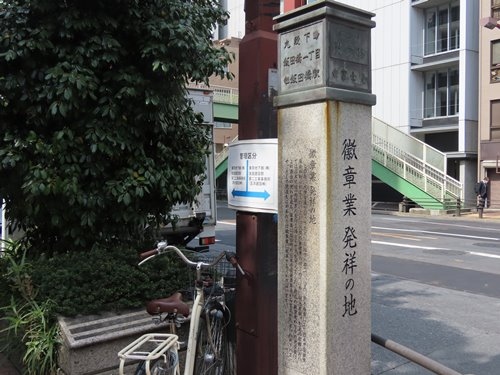 1885年(明治18年)、鈴木梅吉によって、日本帝国徽章商会が設立されました。徽章業。その頂点は勲章の類でしょうかね。そうでなくても、軍服だけでなく学生も制服につけていた時代が長くありました。その後、商会の流れを汲んだ会社がこの界隈に多いのだそうです。
