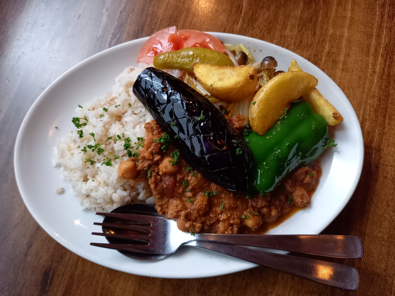 宮城県庁の北側、ビルの2階にあります。店内はコロナ対策で換気していると言えども寒すぎでした。ランチにはハンバーガーと平日限定のプレートがあります。今回はプレート880円をお願いしました。行った日はキーマカレーでした。他にスープとドリンクを勧められ、要らないと言ったら、水をドンと置いて行かれました。店員は気が短い様です。キーマカレーには揚げ物もトッピングされており、出てくる迄時間がかかりました。味は普通でした。