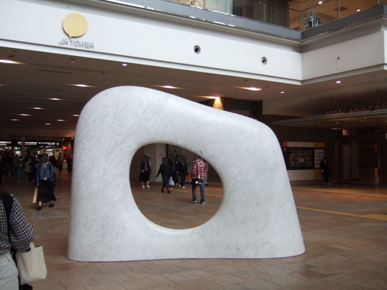 札幌駅の西改札口を出ると、南口手前の広場にあるオブジェ。北海道美唄市出身の安田侃氏の作品で、白い御影石でできています。