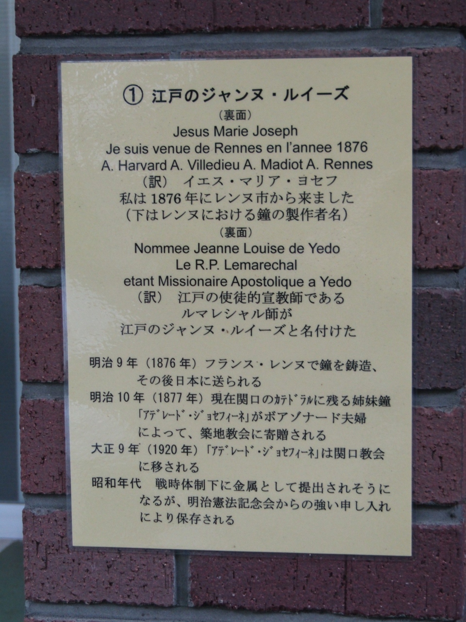 入口右側に置かれている「江戸のジャンヌ・ルイーズ」と名付けられた青銅製の鐘やレリーフは約150年前に作られたものでが、なかなか見応えがありました。