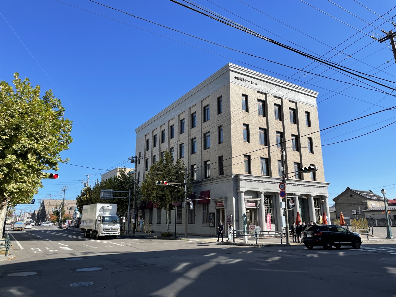 「北のウォール街」と呼ばれる日銀通り沿いにあります。1922年に建設、旧三菱銀行小樽支店が入居する4階建エレベーター付のビルでした。現在はバスターミナルを兼ねた土産物売り場になっています。外観はシンプルですが、1階には半円柱が並び銀行らしさが伺えます。