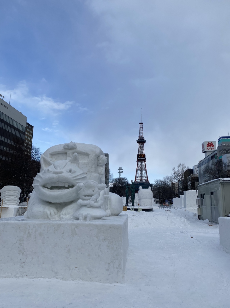 札幌駅から南へ。大通り公園に行くにはテレビ塔を目印にして向かうのがわかりやすいです。大通り公園は札幌雪まつりの会場になる、大きな公園で、たくさんの人たちで賑わいます。会期中は一方通行になり、人の流れに合わせて歩くのですが1丁目から10丁目までのんびり歩いて1時間ほどかかりました。