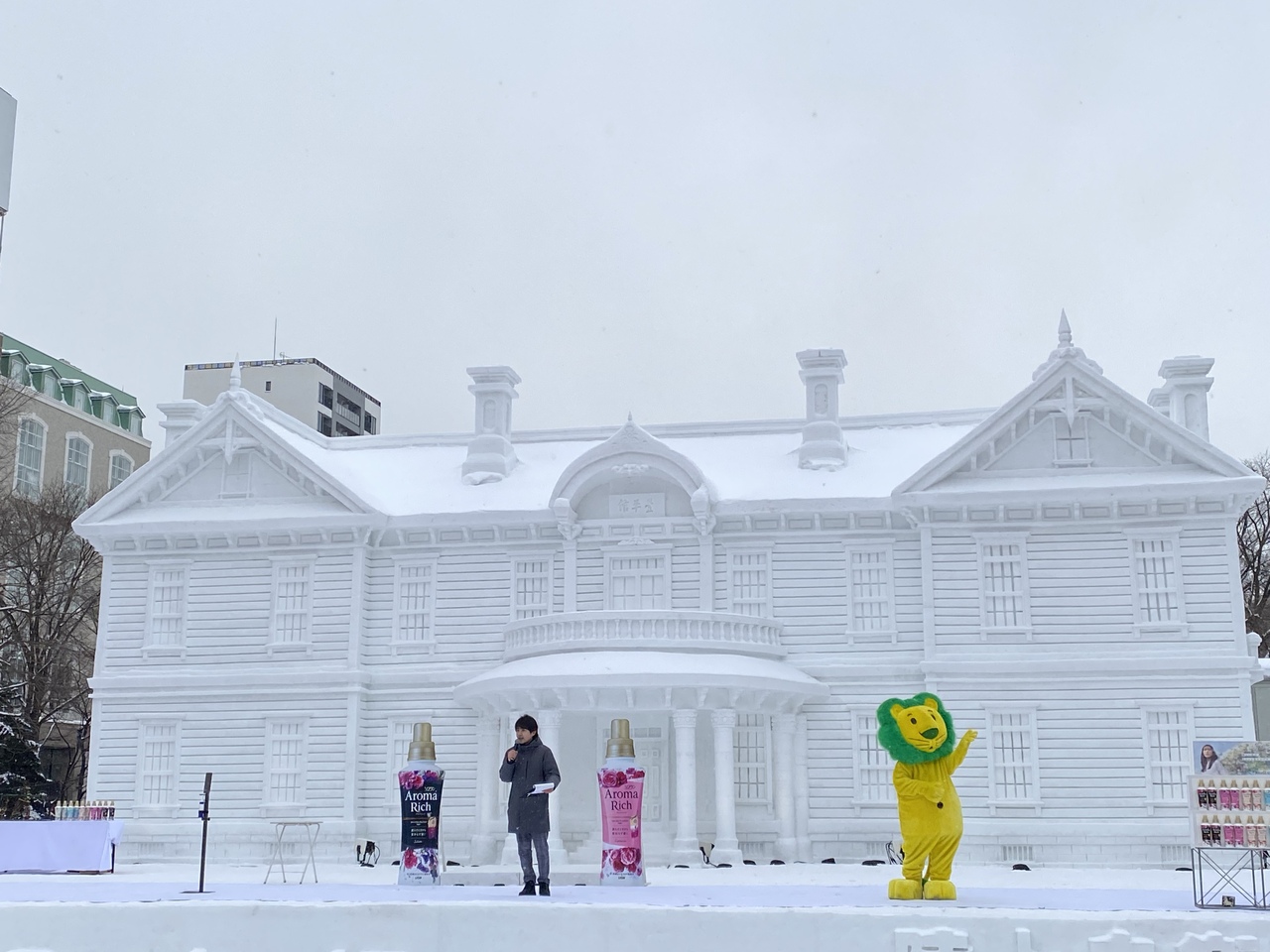 大通り公園1丁目から10丁目まで行き、折り返して再び1丁目まで歩きました。大雪の影響か、市民の作った雪像の中には未完成のものがありましたが、どの作品も作り手の熱がこもっていて感心しました。大雪像がいくつもあって見応え十分。夜にはプロジェクションマッピングの技術で、色鮮やかに大雪像に映像が映し込まれていて、昼と夜と楽しめます。
