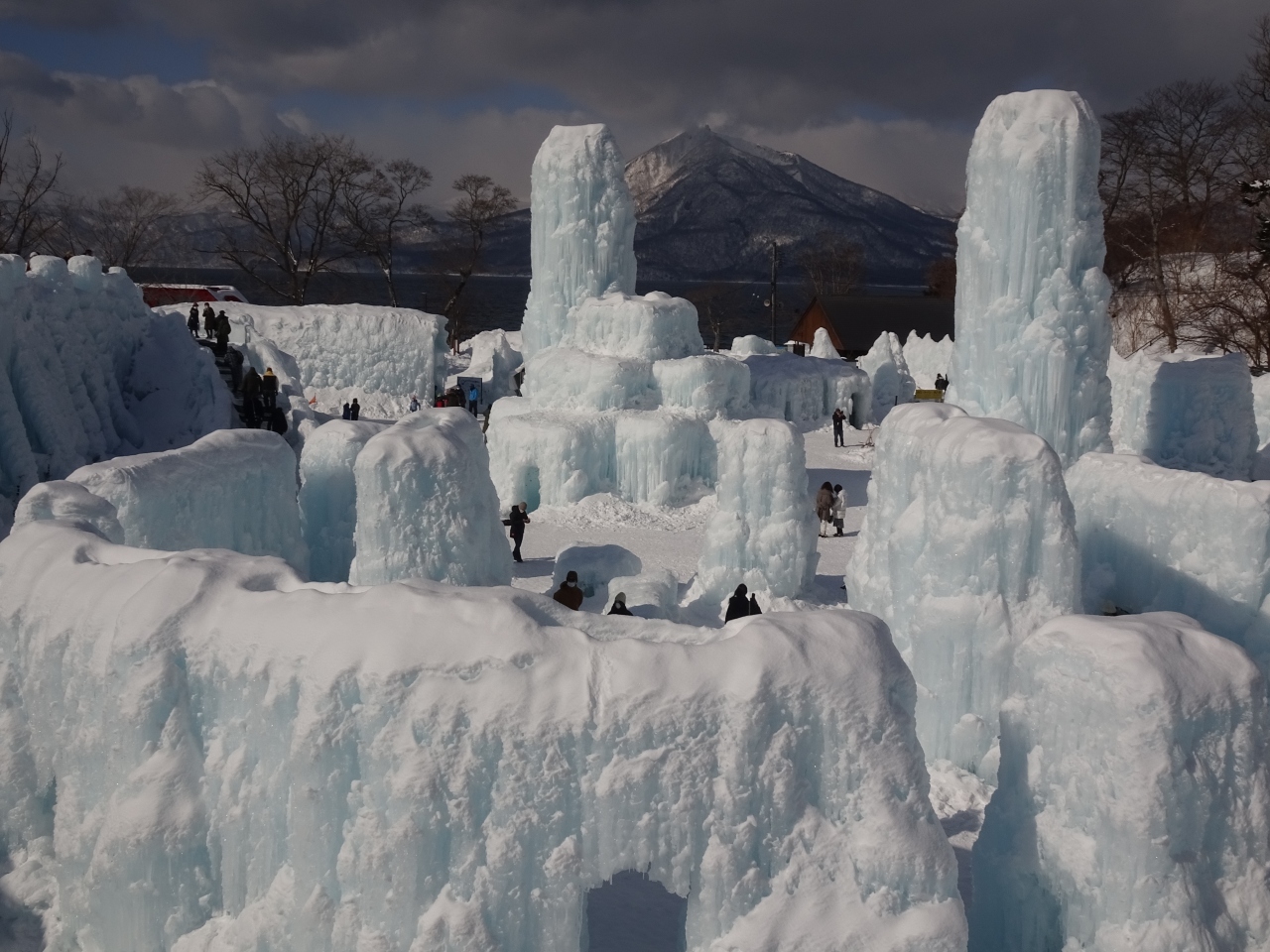 また会場を一望できる展望台も造られていて、氷の美術館、そして支笏湖を通して遠くに見える恵庭岳との風景がベストマッチでした。