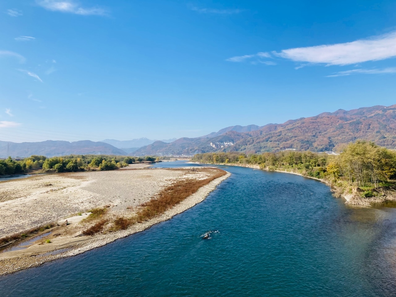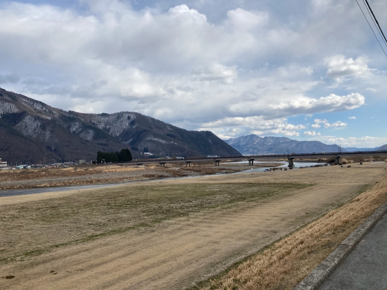 千曲川は今では当たり前の眺めになりますが、時折川のそばを歩くと、雄大な眺めと、背後の信州の山々美しく、癒されてストレスもなくなります。