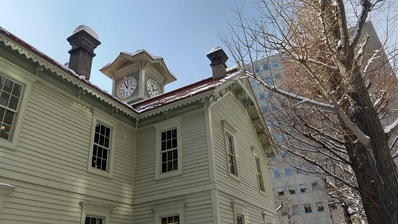 札幌の観光名所で観光客で賑わう場所ですが入場料大人200円で見学する旅行者は少ない印象です。何度も見学する時計台ですが、白い壁に赤い屋根と記憶していましたが、淡い緑がかった壁で以前とは印象が違いました。