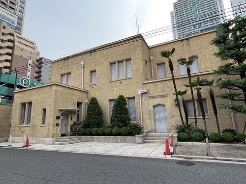 天保2年創業という老舗、岸本商店の5代目、岸本吉左衛門の本邸として建設された建物です。竣工は1931年(昭和6年)。見学は不可で外観だけしか見ることができませんが、風格ある龍山石の石貼りの壁面が特徴的ですね。登録有形文化財に指定されていました。