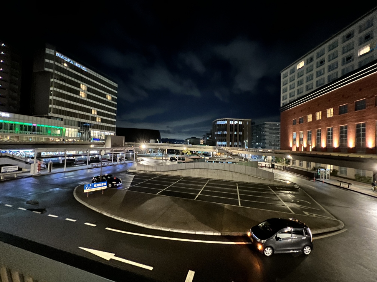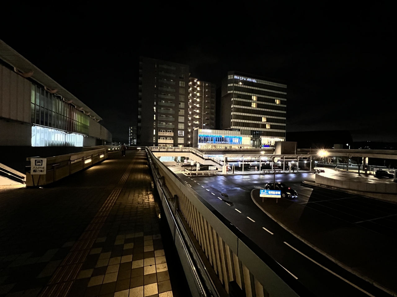 奈良駅のJRのほう。観光地や繁華街からは少し離れているが、駅前はバスターミナルで移動できる。夜は静か。