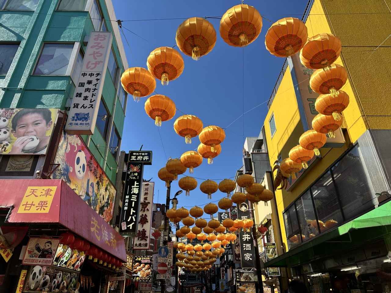横浜中華街での春節のメインのイベントは1/22から2/5ですが、11/1からは春節燈花イルミネーションが開催されます。一番見ごたえのある飾りがされるのが中華大通りで、通りに上は数えきれないほどの黄色いランタンで飾られます。