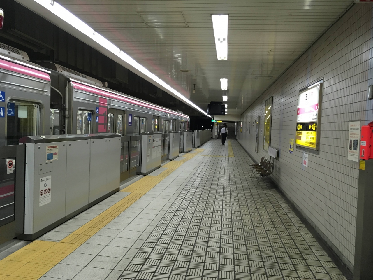 御堂筋線や堺筋線とくらべるとやはりこの千日前線は空いています。本数も少なめですし。ただ、乗り継ぎなどはさほど悪くないので、ちょっともったいないなと思います。駅のつくりも編成を増やしてもいいように対応できている駅も多いです。