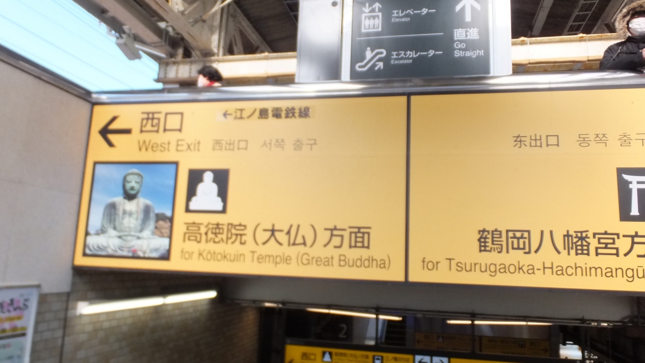 鎌倉の散策をするために利用した電車です。グレーの車体にブルーとクリームの線が入った車体です。車内は結構混んでいました。鎌倉駅を降りると写真付きで案内があって(大仏の写真とか)わかりやすかったです。鎌倉殿の大河ドラマのイラストも貼ってあったりしました。