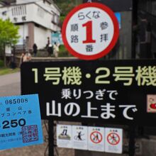 スロープコンベア手前にチケット売り場があり、大人1人:250円で利用できます。