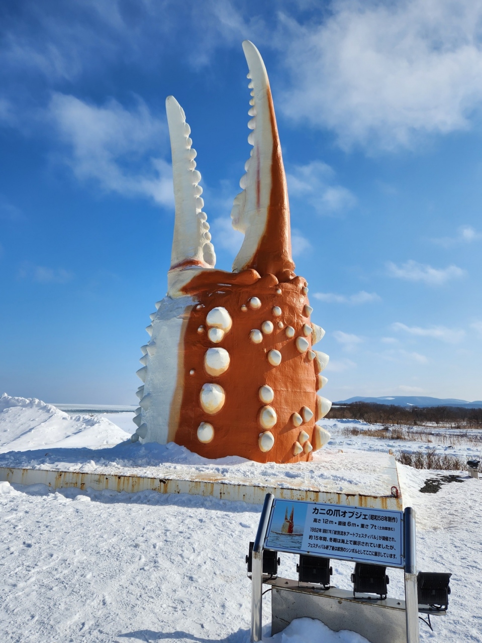 何度も見ました。どうせならば、爪だけでなく全身をオブジェにすればと思うのですが…リアリティーは十分でした。蟹の町だけありますね。この身が本物だったら、食べ終わったら、死ぬまで蟹は食べなくても良さそうです。