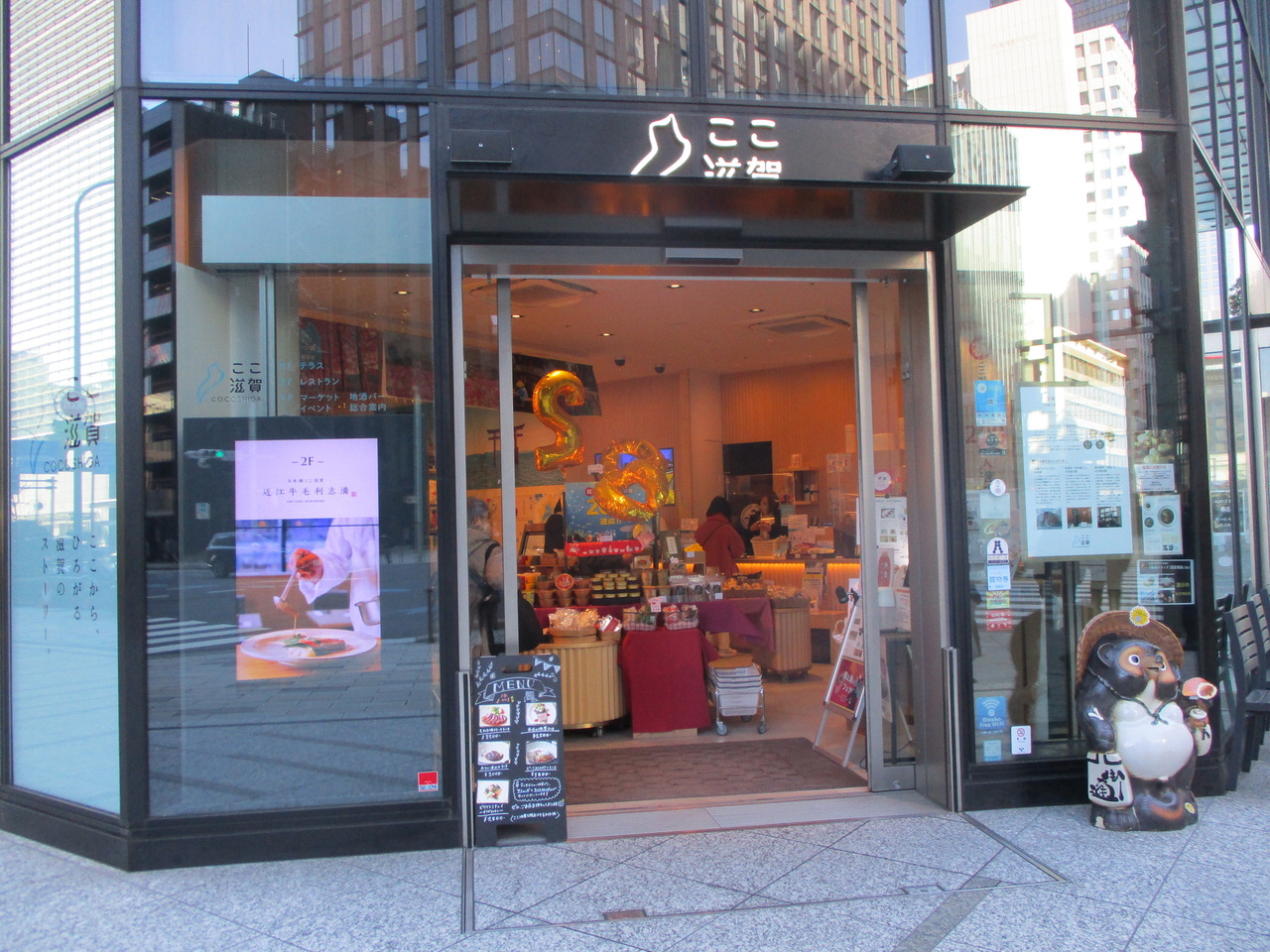 お馴染みのひこにゃんのグッズが色々ありました。店頭では、ちょっと1杯飲みながら、近江牛の串がつまめるようになっていて、近くに勤めている方が羨ましいと思いました。近江牛が食べられるレストランも併設していました。