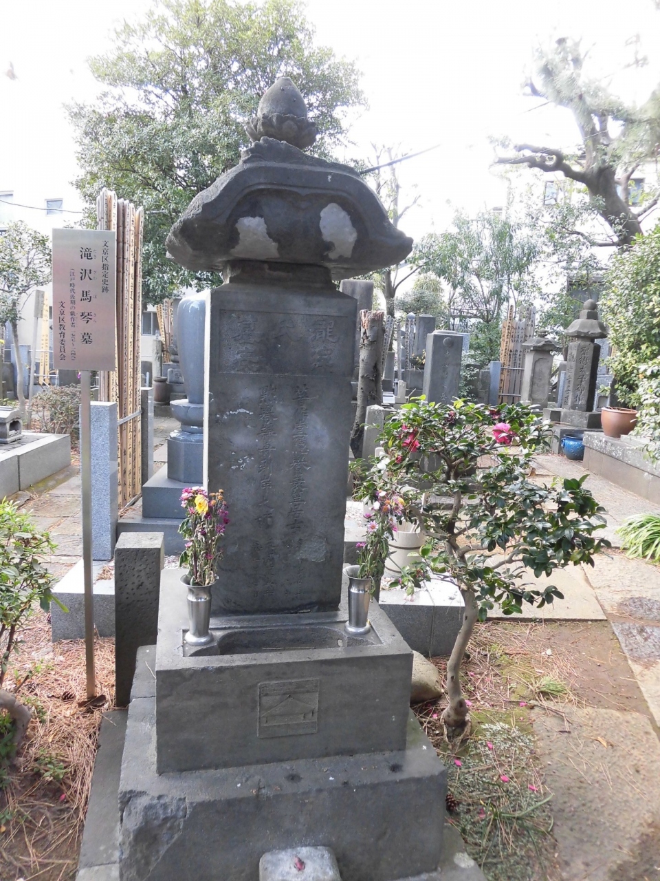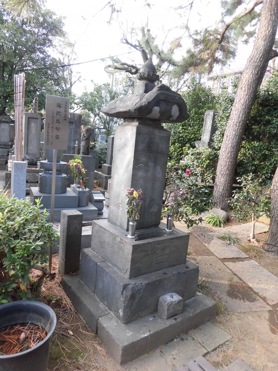 茗荷谷にある深光寺に立ち寄った時に、南総里見八犬伝の作者、滝沢馬琴のお墓があったので、手を合わせてお参りしました。墓石はそれなりに古くなっていますが、そばに案内表示板も立てられていて、墓石に刻まれた文字は、読み取ることができて良かったです。
