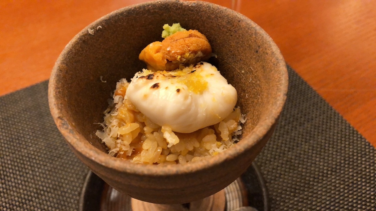 雲丹しゃりリゾット河豚白子のせ まぁ美味しいわね^^