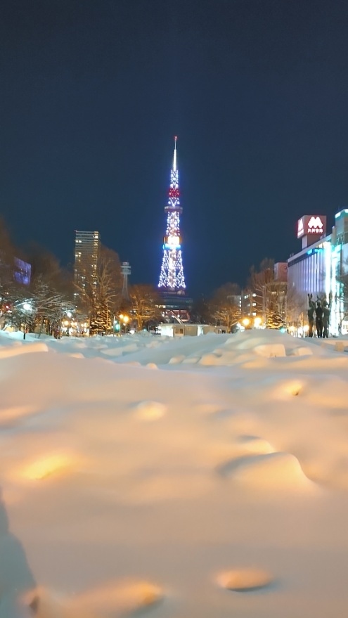 その外観の美しさは他の地域のテレビ塔に負けません。眼下に大通り公園、その先に五輪の競技場になった大倉山も見え、まさに見ても入っても美しい観光名所です。この時期はライトアップされますが雪によく生えます。