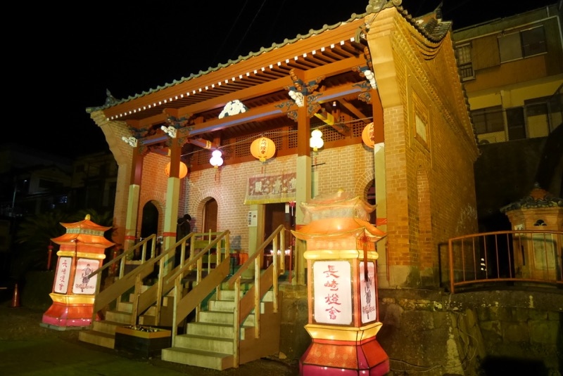 唐人屋敷四堂めぐりの会場のうちのひとつがこの観音堂です。四つのなかでもひときわ古びている印象を受けました。ここのランタンはちょっと新しいなと思ったら、(漫画原作の)アニメの「キングダム」がランタンのスポンサーになっているみたいでした。面白い試みだなと感じます。