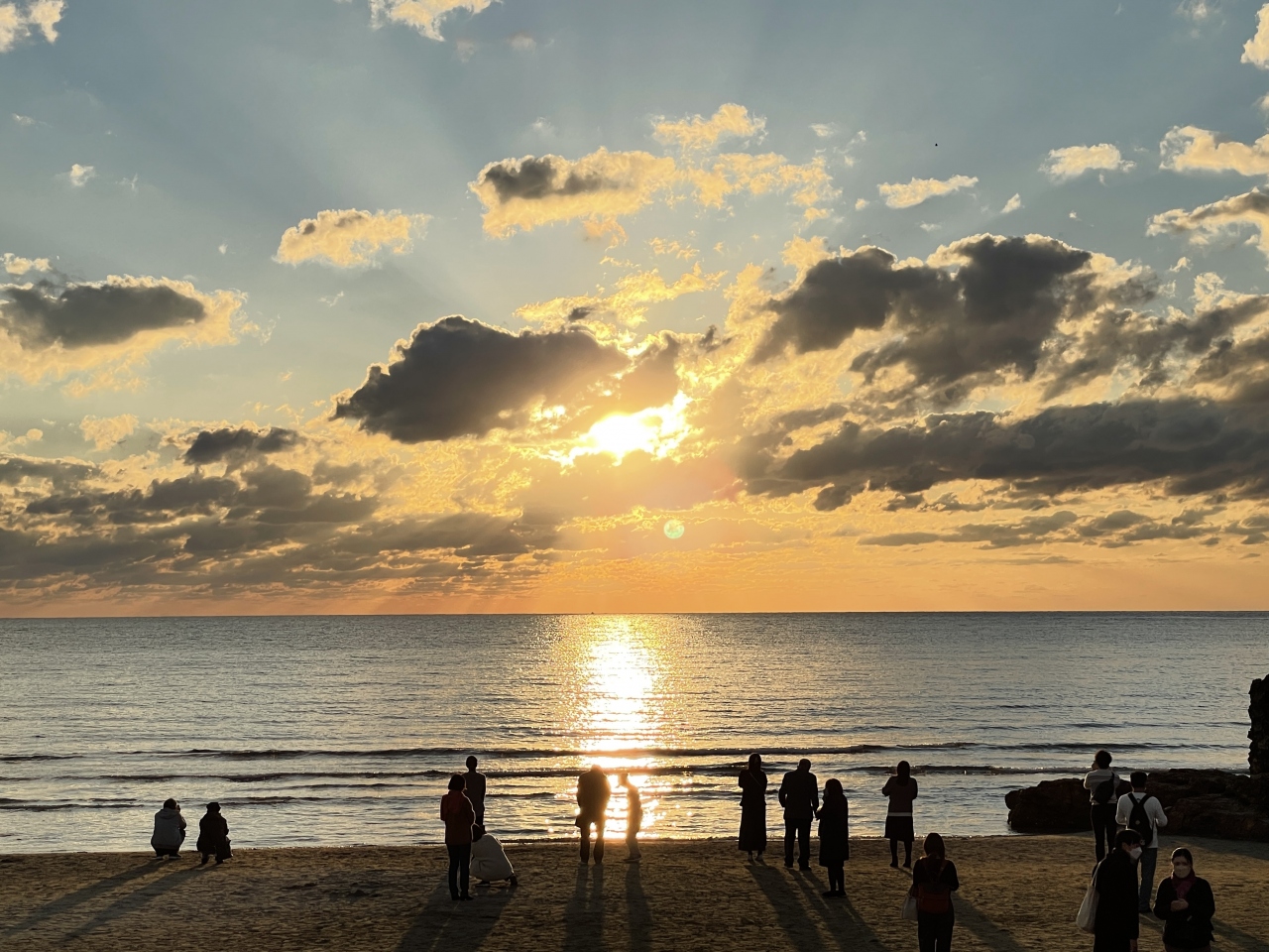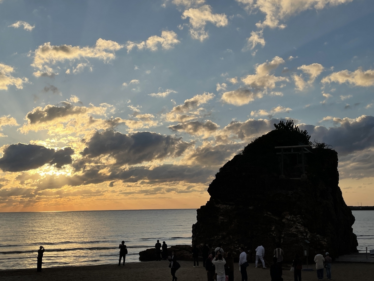 出雲大社参拝後、夕日の時間に合わせて稲佐の浜へ向かいました。