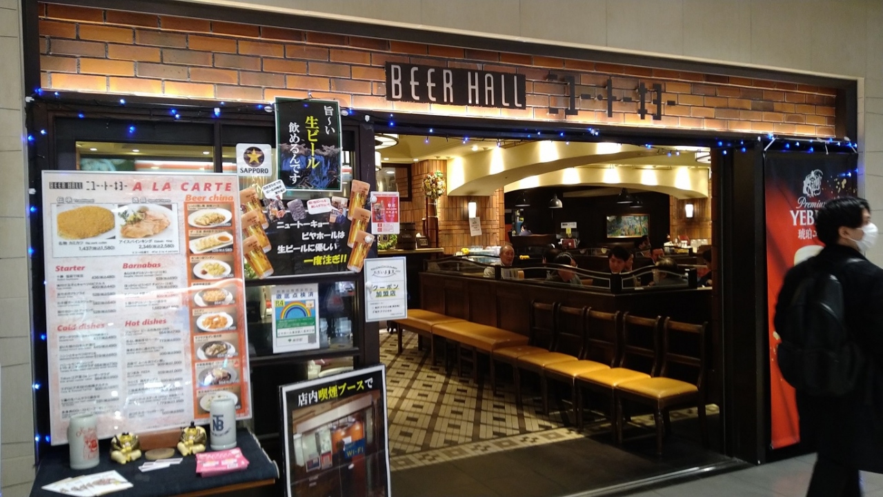 JR東京駅八重洲口地下の八重洲地下街にある大規模なビアレストランです。夕食で東京海鮮ちゃんぽん焼きそば1280円をいただきました。エビやイカ、ホタテなどの海鮮とキャベツ、ニンジン、モヤシ、ヤングコーン、小松菜、ニンジンなどの野菜、そして豚肉、キクラゲなどの餡ののった焼きそばです。チャンポン麺というよりは、普通の中華麺に近い感じでした。餡は具たくさんで、上品な味付け。値段も高価でしたが、とっても質の高い一品だと思います。